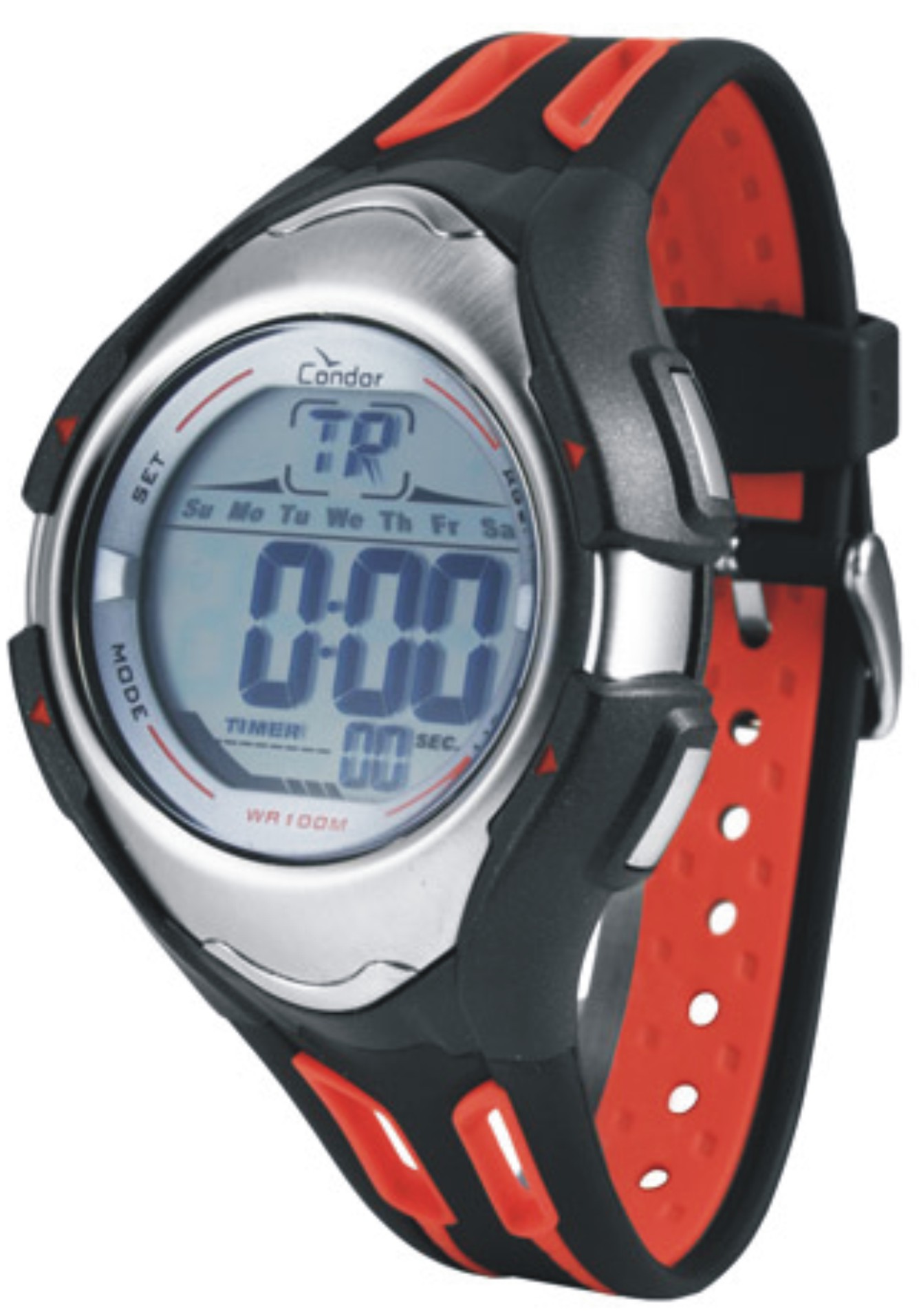 Caixa e Pulseira em Poliuretano; Cronômetro progressivo